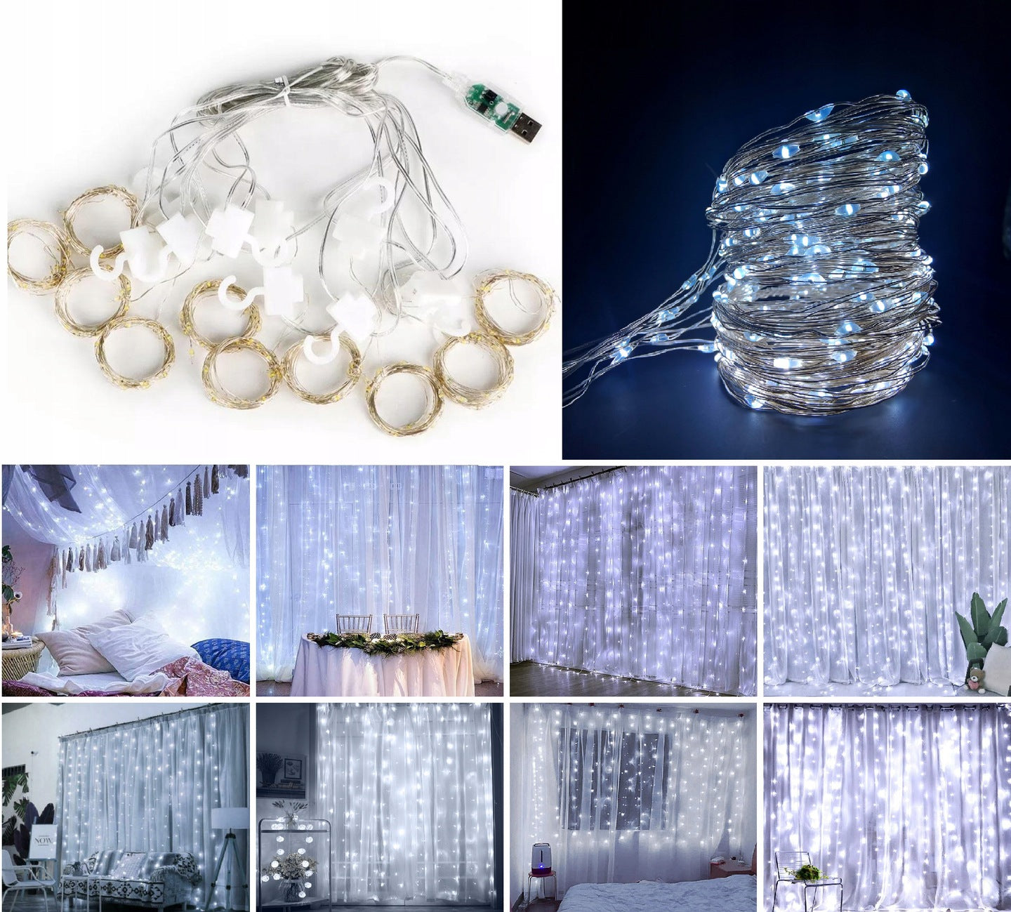 LED girlianda su 10 pakabinamų varveklių, kurių kiekvienoje yra 30 šviesos diodų.