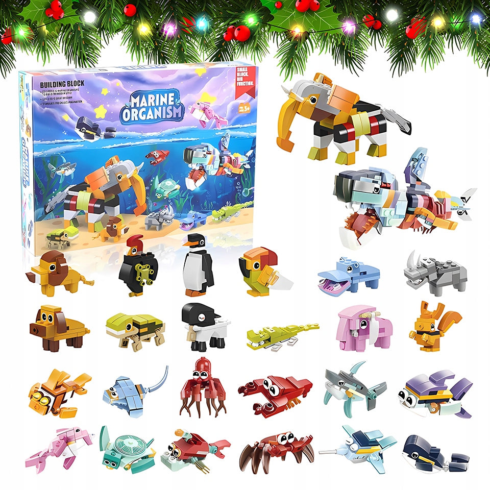 Komplektā ietilpst: 24 klucīšu komplekti dzīvnieku konstruēšanai.