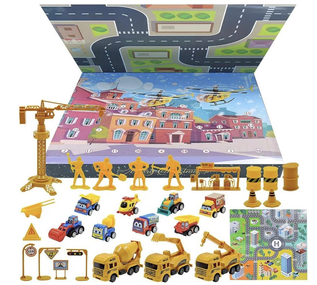 Adventes kalendārs piedāvā unikālu dažādību, tostarp 6 automašīnas, 10 atpakaļgaitas transportlīdzekļus, 2 helikopterus un 11 aksesuārus, piemēram, ceļa zīmes un ielu apgaismojumu. Pateicoties šai kolekcijai, bērni var radīt plašus rotaļu scenārijus, apgūstot dažādus transportlīdzekļus un infrastruktūras elementus.