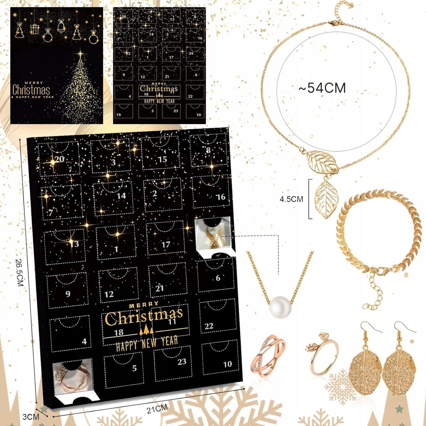 Stilīgs Adventes kalendārs ar 24 svētku rotājumiem. Katru dienu līdz pat Ziemassvētkiem gaida jauns pārsteigums - auskari, rokassprādzes, kaklarotas vai kuloni. Šī ir lieliska dāvanas ideja sievietei, pusaudzei vai draudzenei, kurai patīk aksesuāri un svētku noskaņa.