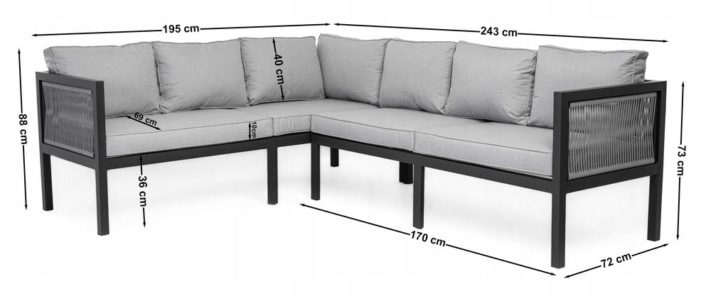 Šīs mēbeles ir izgatavotas, izmantojot stilīgus un laikapstākļiem izturīgus alumīnija rāmjus, kas pasargā no rūsas un korozijas pat mitros apstākļos.