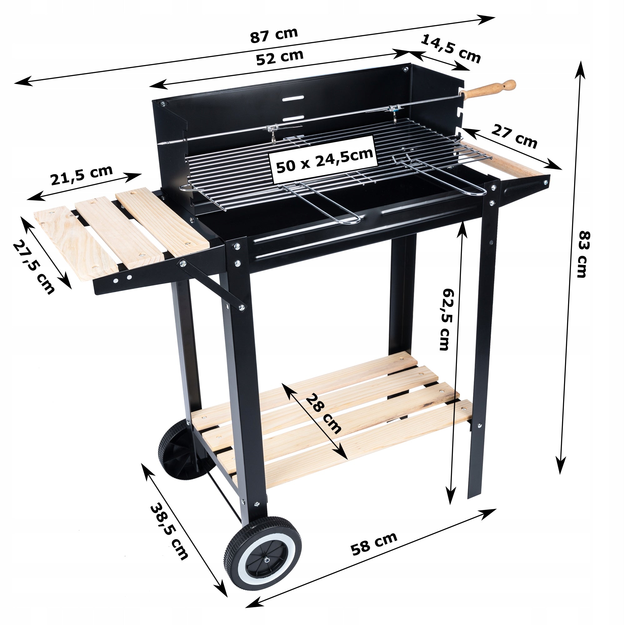 Hromēts grils: 50 x 24,5 cm, stieples diametrs: 3 mm.