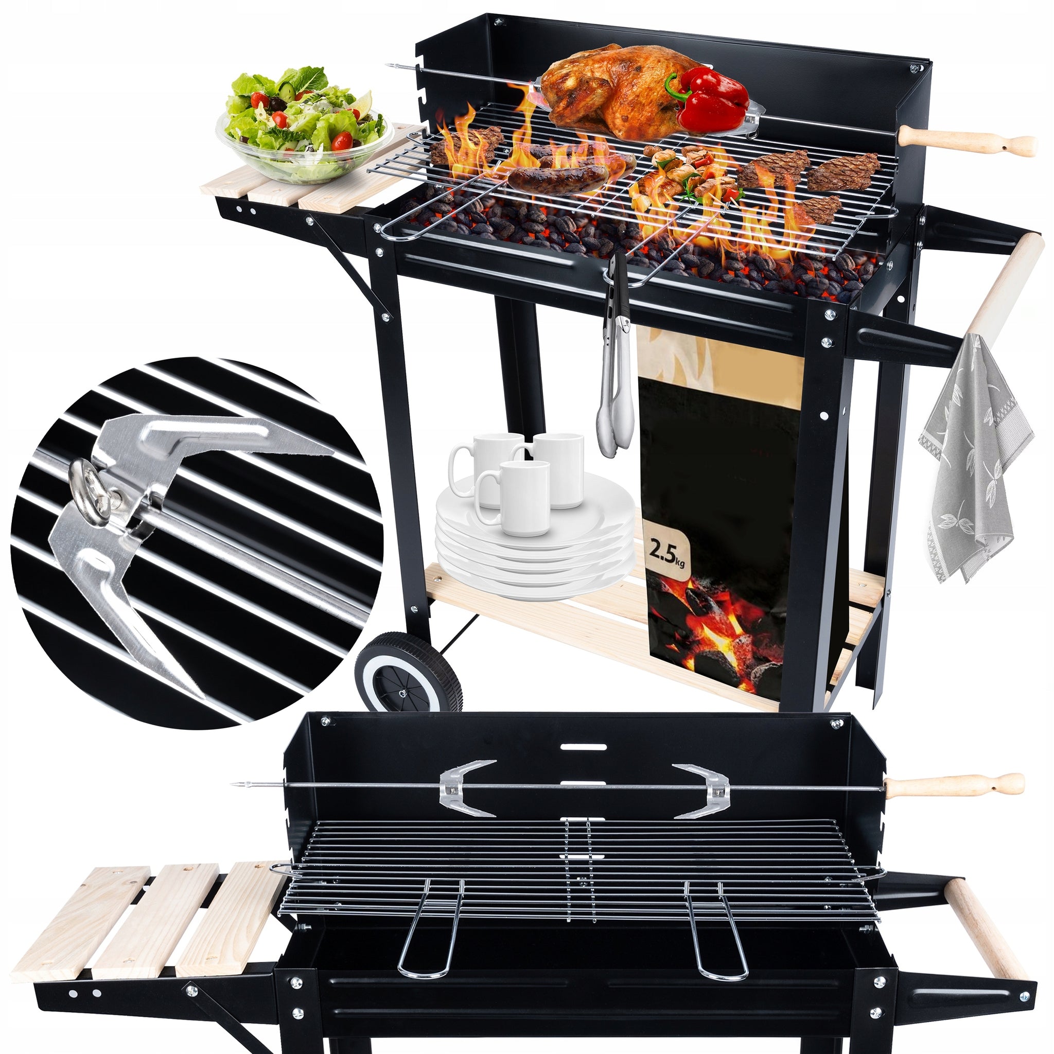 Augstas kvalitātes materiālu, tostarp aptuveni 1 mm biezas loksnes, kas papildus pārklāta ar pulverkrāsu, izmantošana nodrošina grila drošību un ilgu kalpošanas laiku.