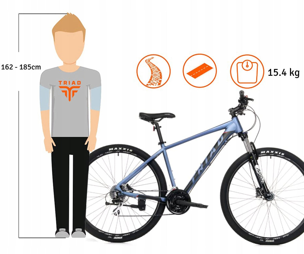 Riepas — Triad M7 ir aprīkots ar divām Maxxis/DSI 29" x 2.1 riepām, kas nodrošina optimālu saķeri gan uz ceļa, gan takām. Riepas ir platas un nodrošina labu saķeri gan mitros, gan sausos apstākļos.