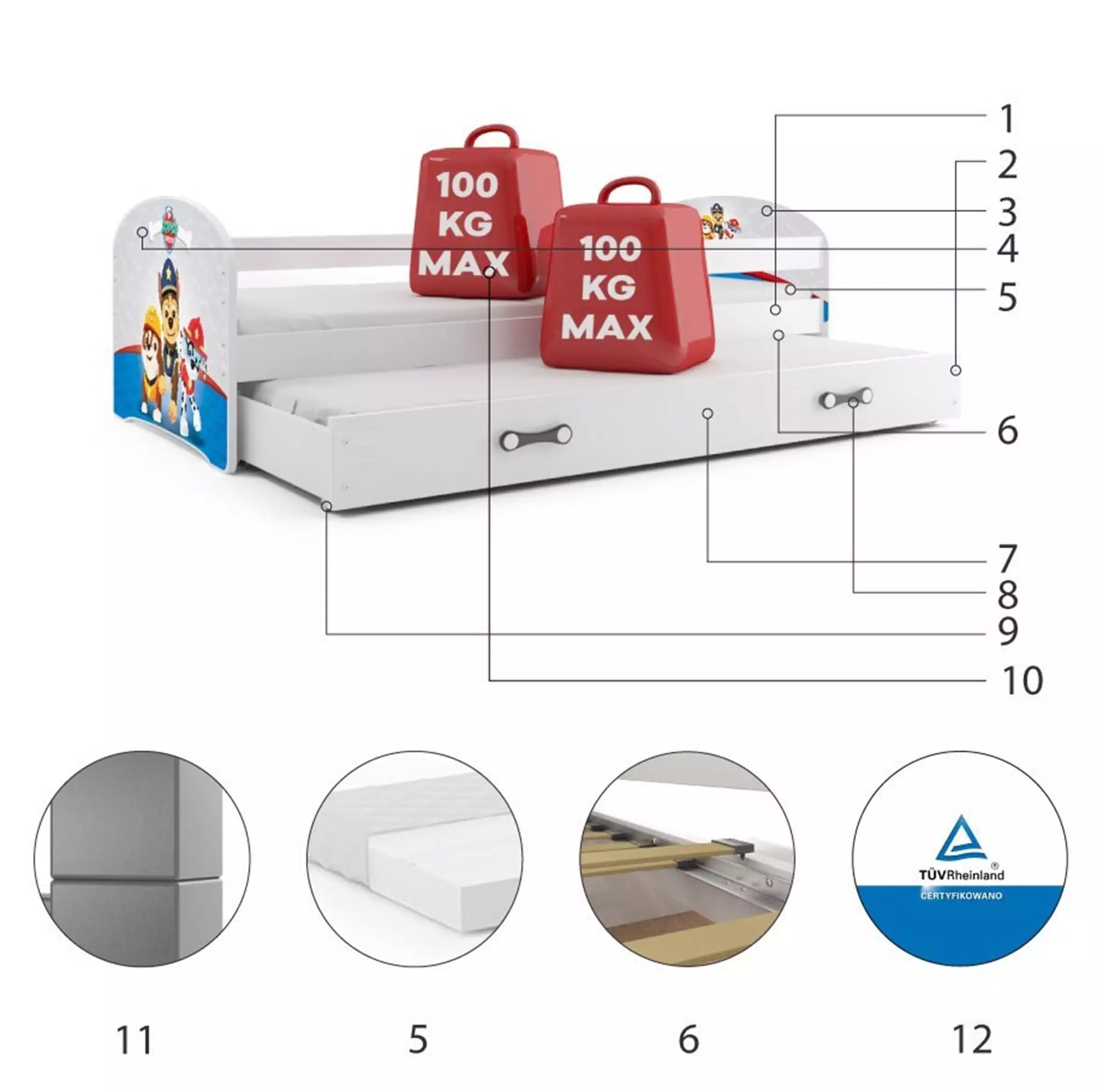 Divvietīgā bērnu gulta ir lieliska izvēle bērniem no četru gadu vecuma. Plašā guļamzona nodrošina ļoti augstu lietošanas komfortu un garantē veselīgu miegu. Divlīmeņu bērnu gultai ir noapaļotas malas, kas ievērojami palielina drošības līmeni, īpaši spēlējoties.