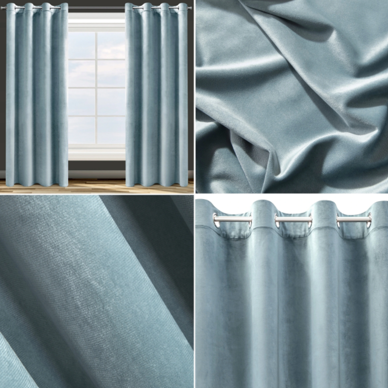 Aizkaru kolekcija Izgatavots no mīksta samta auduma, kas, pateicoties tā blīvumam un biezumam, lieliski noslēpj jūsu logus - no saules gaismas dienā un no ziņkārīgām acīm vakarā.