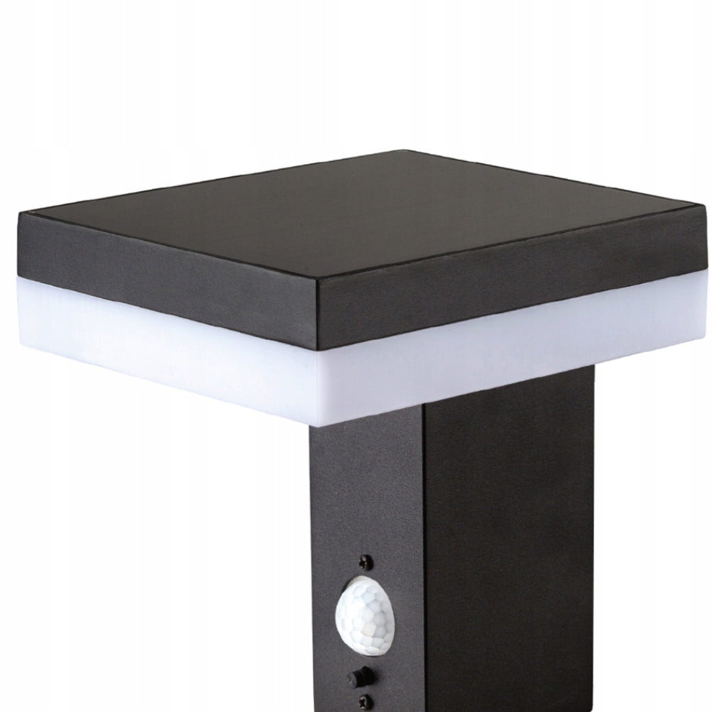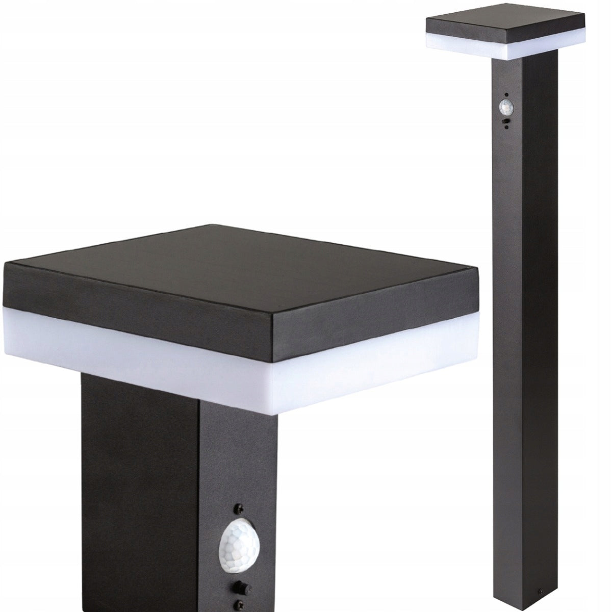 Taisnstūra dārza apgaismojuma stabs ar integrētu LED gaismas avotu un kustības sensoru, 80 cm, melns