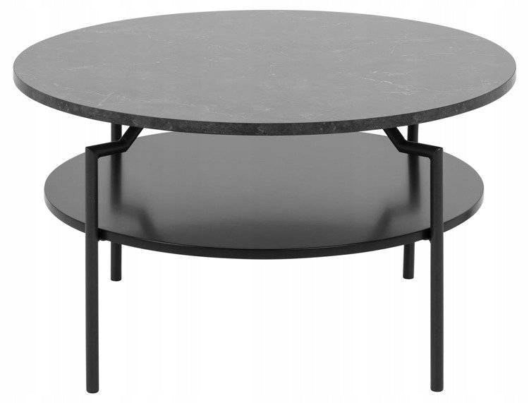 Piedāvātais modelis ir burvīgs savā izskatā. Virsma ir izgatavota no MDF plātnes, pārklāta ar melnu marmora rakstu, un četras metāla kājas ir krāsotas ar melnu matētu pulverkrāsu. Kafijas galdiņa priekšrocība ir papildu melns plaukts, uz kura var novietot lietas, kuras vēlaties turēt pa rokai, bet ne obligāti redzamā vietā.