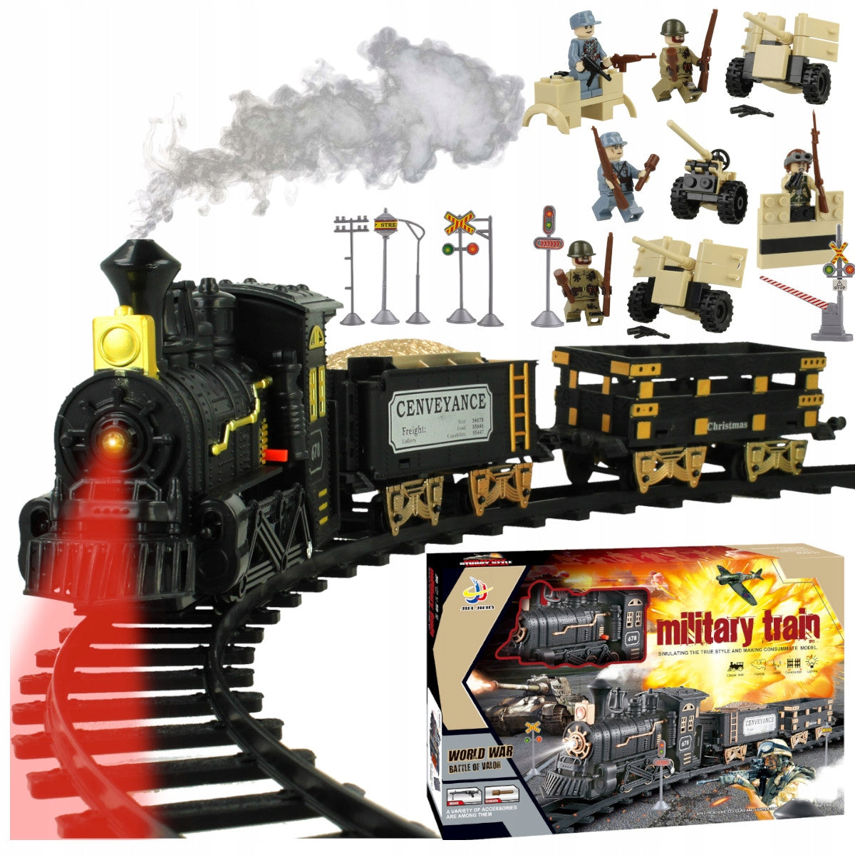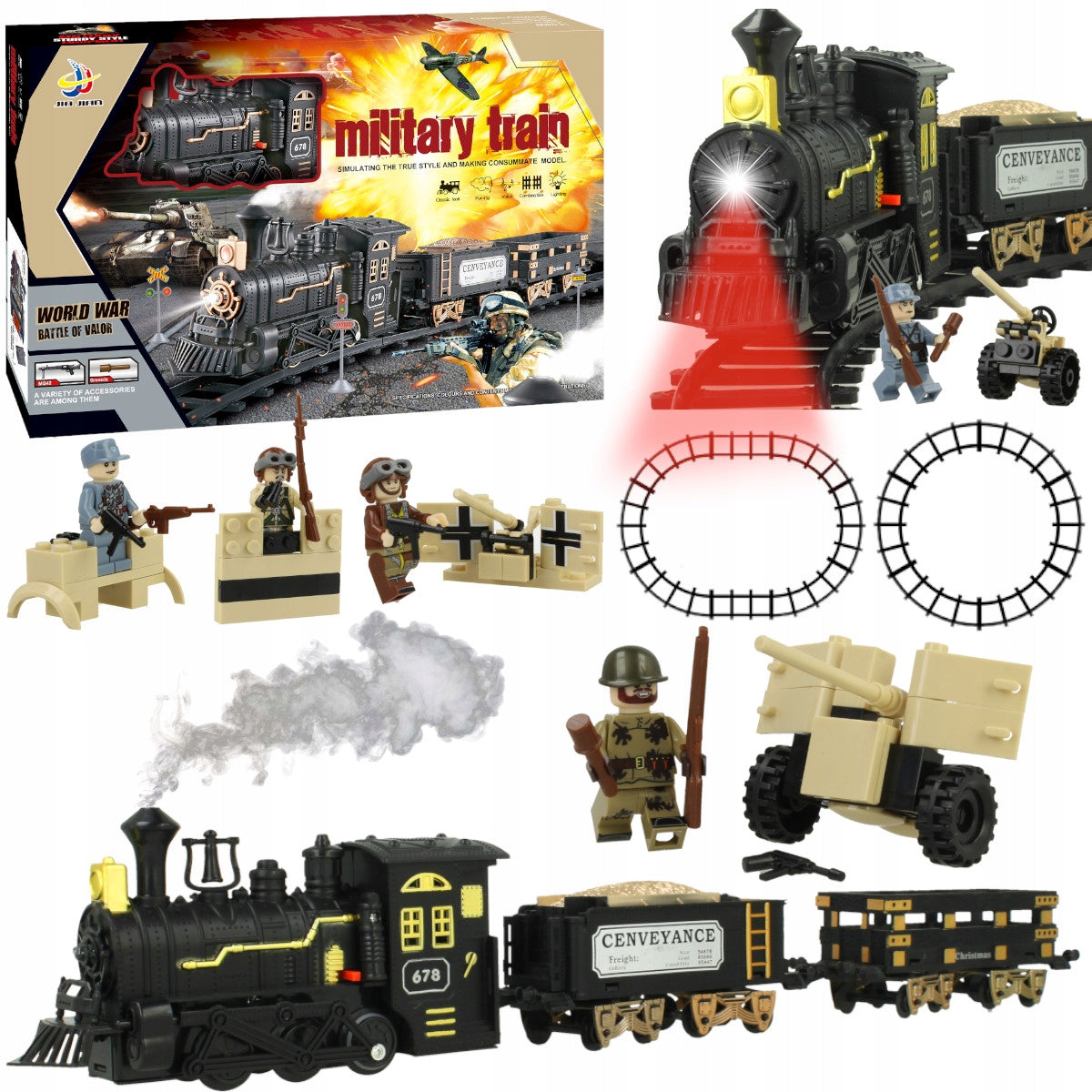 Liels elektriskais militārais vilciens ar 2 vagoniem un karavīriem