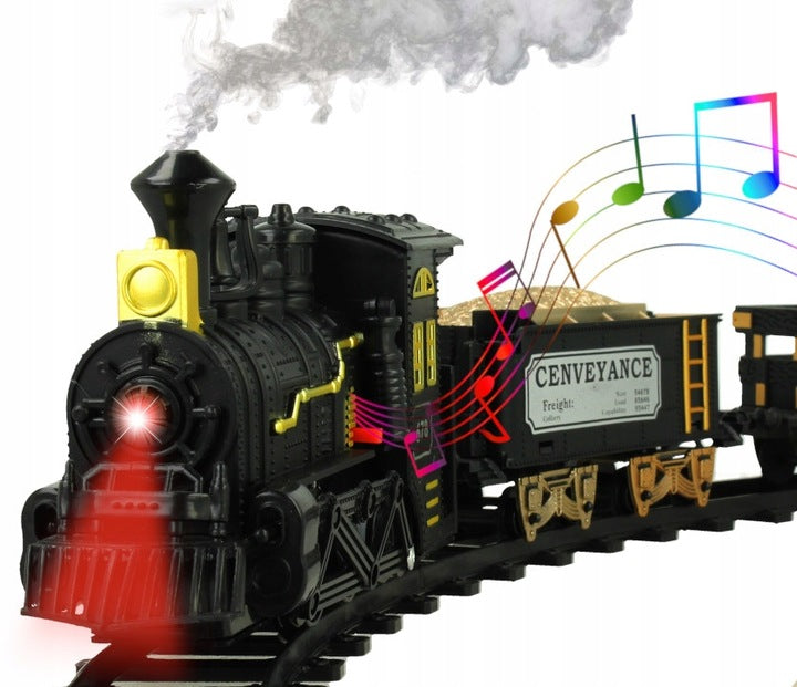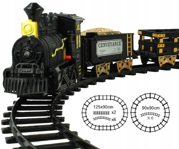Klasiska lokomotīve ar reālistiskām formām, kas aprīkota ar elektromotoru, ko darbina trīs AA baterijas. Kompozīciju papildina divi vagoni. Mega lokomotīve rada reālistiskas skaņas: kustības laikā no skursteņa nāk gaismas un dūmi.