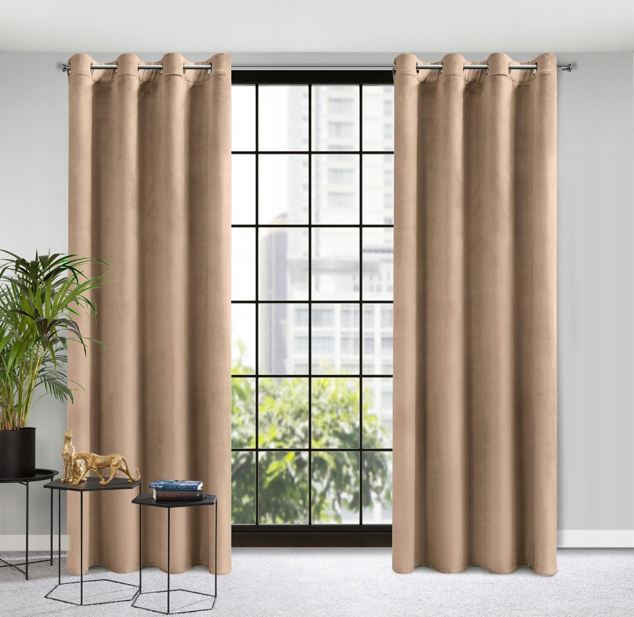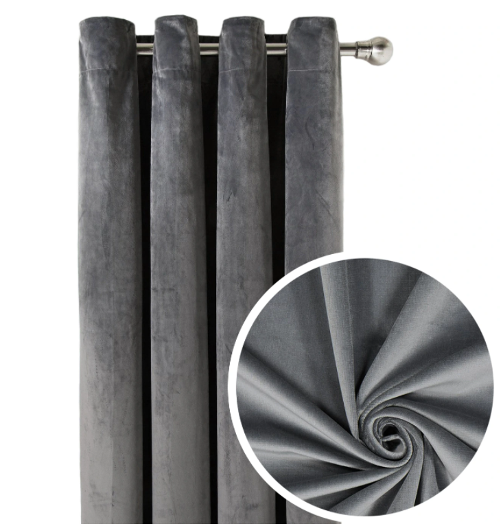 Samta aizkari ir ārkārtīgi eleganti, izgatavoti no augstākās kvalitātes velūra, kas ir pūkains, mīksts un ārkārtīgi patīkams pieskārienam . Sava izskata dēļ tas tiek uzskatīts par greznu materiālu. Gredzenu diametrs ir 4 cm.