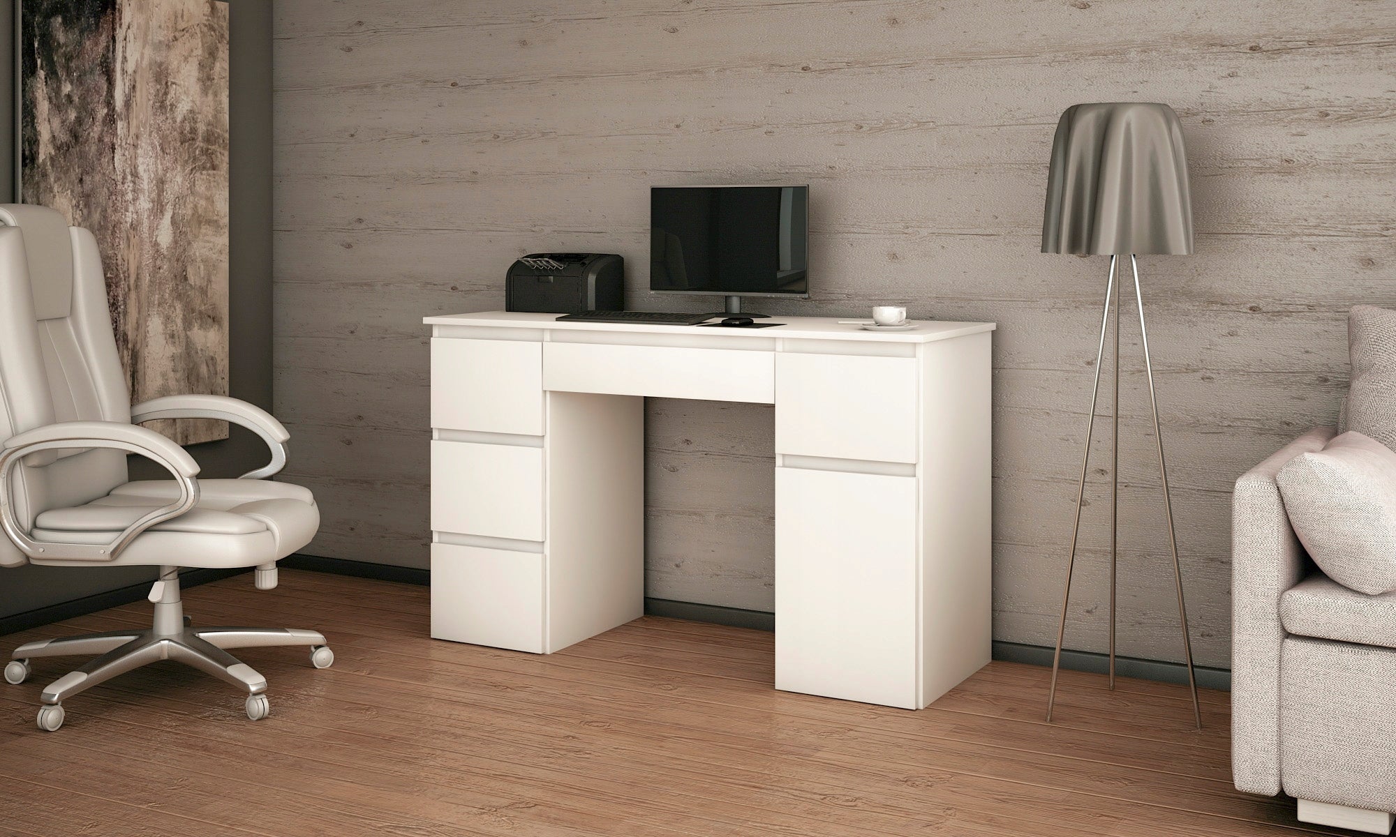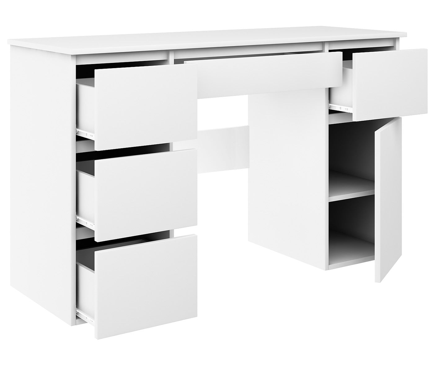 Megan S rakstāmgalda papildu priekšrocība ir tā universālums, tāpēc, ja jums ērtāk ir novietot skapīti kreisajā pusē, tad salieciet rakstāmgaldu otrādi.