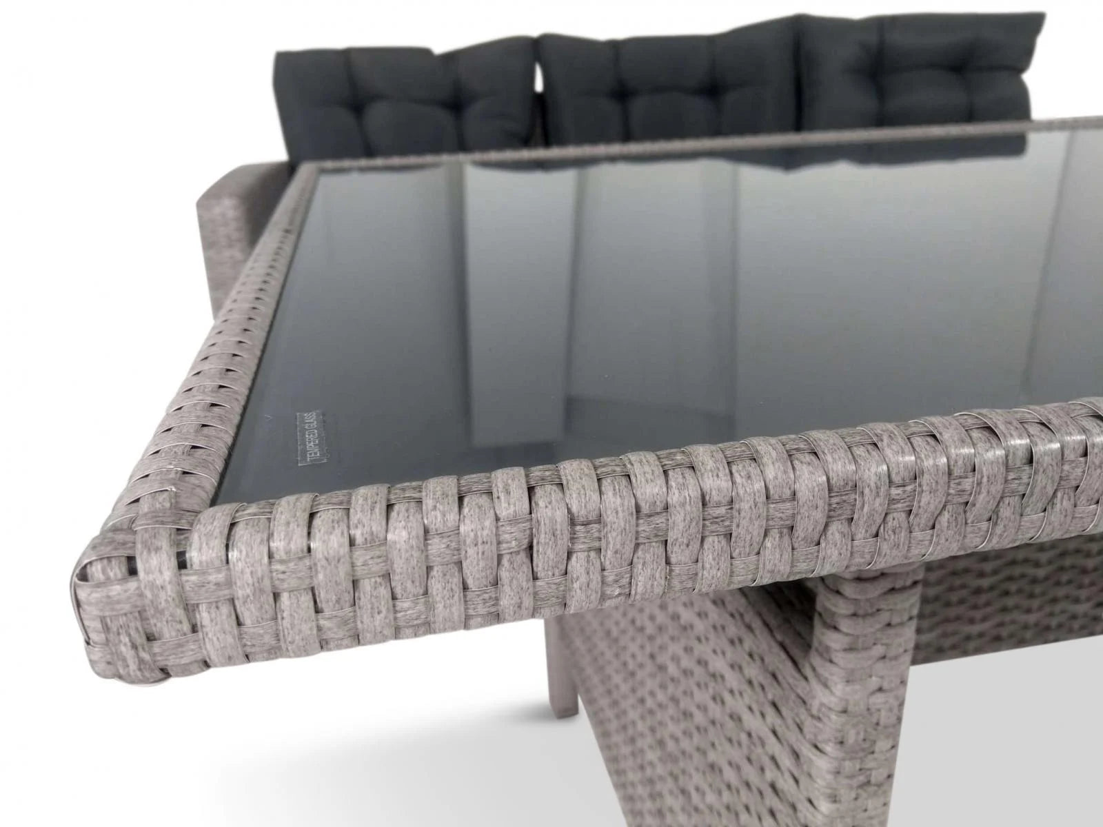 Topiano Grey polirotanga dārza mēbeles ir izgatavotas no stabila metāla rāmja. Tās ir pārklātas ar augstas kvalitātes polirotanga pinumu, kas ir izturīgāks un ilgmūžīgāks nekā dabīgais rotangs. Šo materiālu ir viegli tīrīt. Pietiek ar mitru drānu.