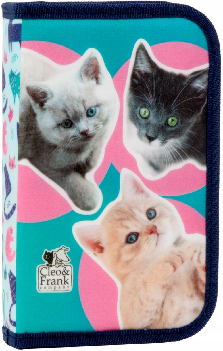 Vienkamerinis pieštukų dėklas su priedais, užsegamas užtrauktuku. Viduje yra du papildomi atvartai.