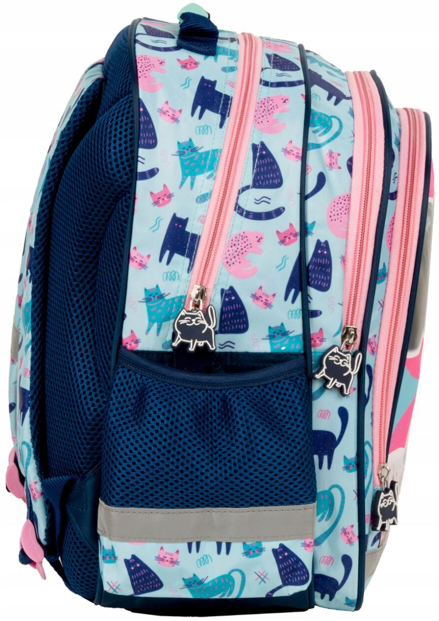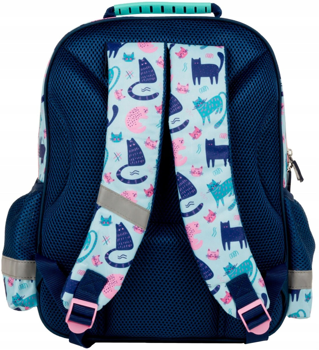 Dviejų skyrių mokyklinė kuprinė su erdvia priekine kišene. Dvi šoninės kišenės su tinkleliu.