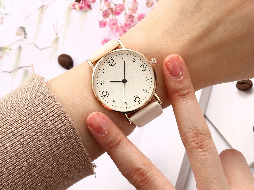 Moteriškas laikrodis su siauru dirželiu SLIM smėlio spalvos