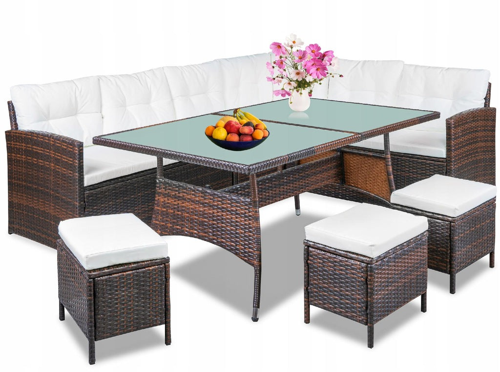 Sodo baldų komplektas Ebro Corner patenkins net išrankiausius. Konstrukciniai elementai pagaminti iš patvariausių ir oro sąlygoms atspariausių medžiagų.